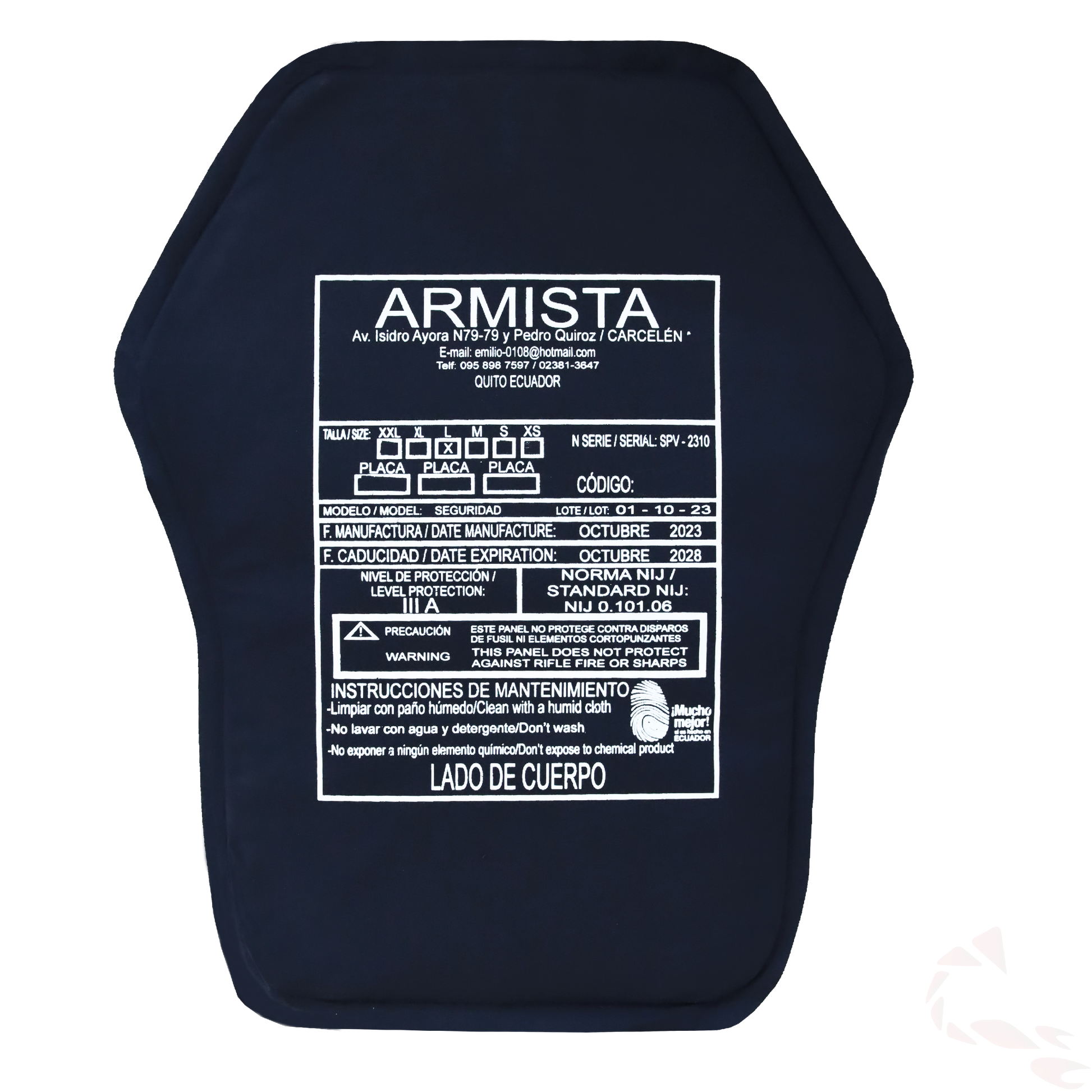 Diseño:El diseño del panel sigue la forma natural del torso humano, proporcionando una protección óptima para los órganos vitales tanto en la parte frontal como en la posterior.