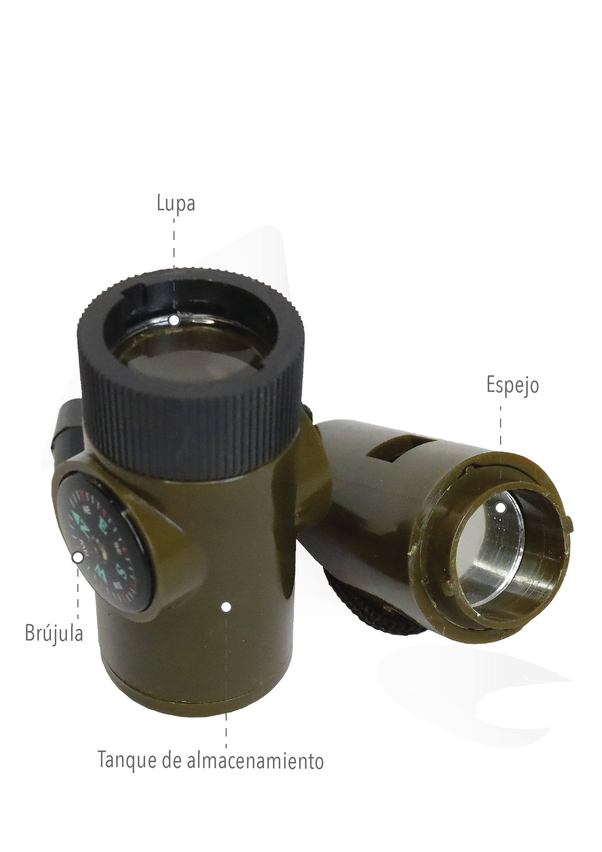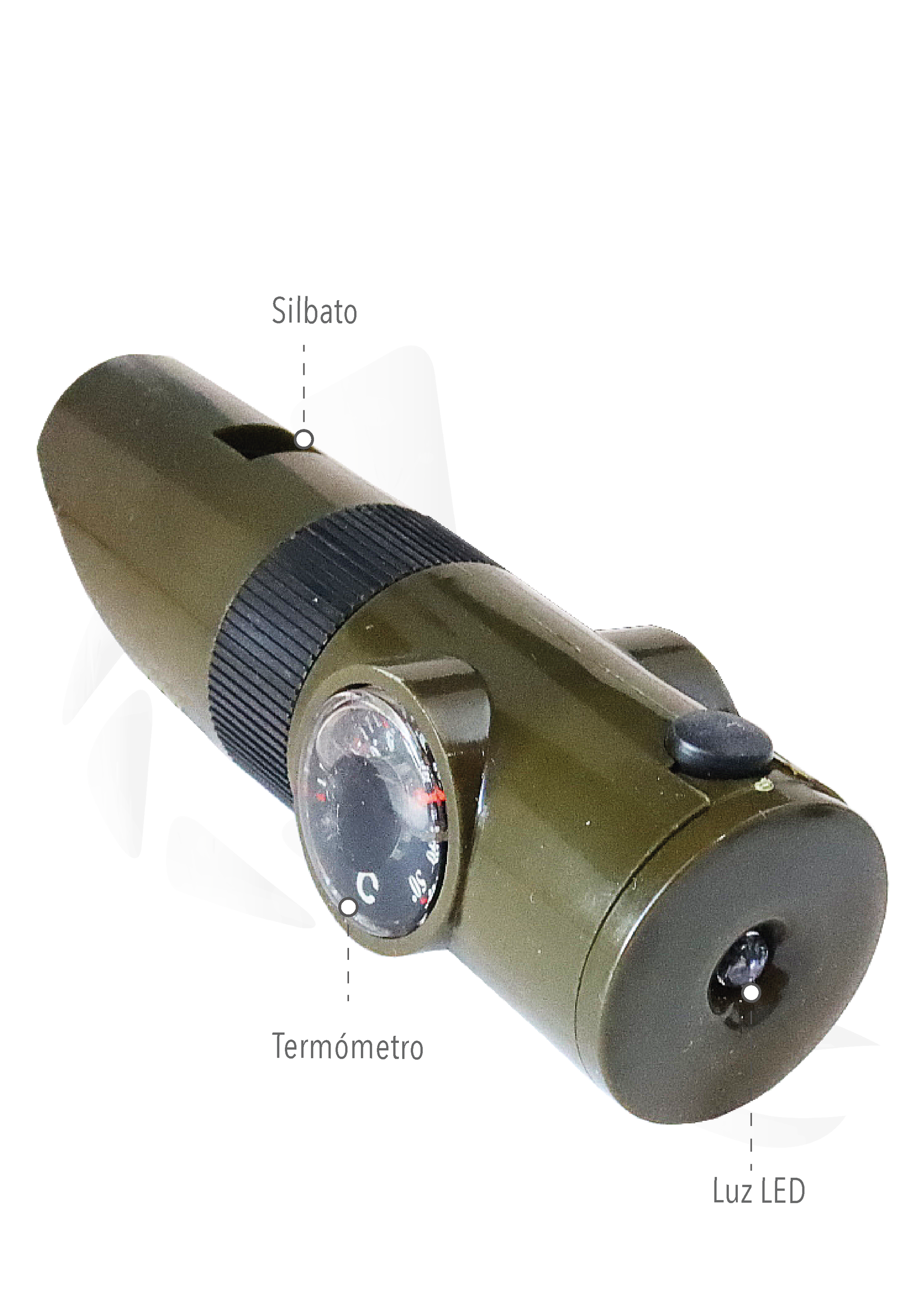 ¡Disfruta de la seguridad y funcionalidad en cualquier situación al aire libre con el SILBATO MULTIFUNCIONAL! Diseñado con un sonido audaz y nítido, te asegura una llamada de atención eficaz. Además, cuenta con múltiples funciones para facilitar tus actividades al aire libre. ¡No salgas sin él!